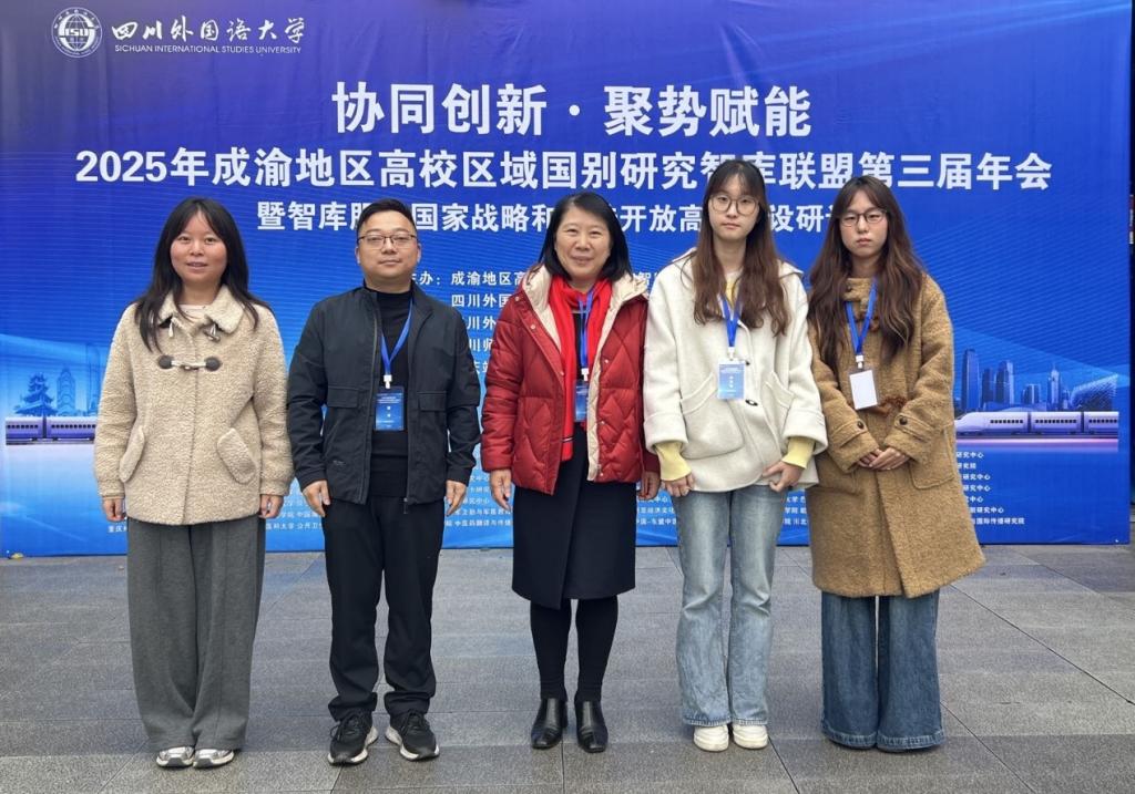 11月23日,2025年成渝地区高校区域国别研究智库联盟第三届年会暨智库服务国家战略和内陆开放高地建设研讨会在四川外国语大学举行。本次盛会汇聚了来自成渝地区近50所高校、60余家区域国别研究机构约150名专家学者,围绕区域国别研究建设展开深入交流。我校国际教育学院院长、欧洲研究中心常务副主任余元玲、欧洲研究中心副主任雷洋和外国语学院副院长李翠英等研究人员及7名硕士研究生出席会议。